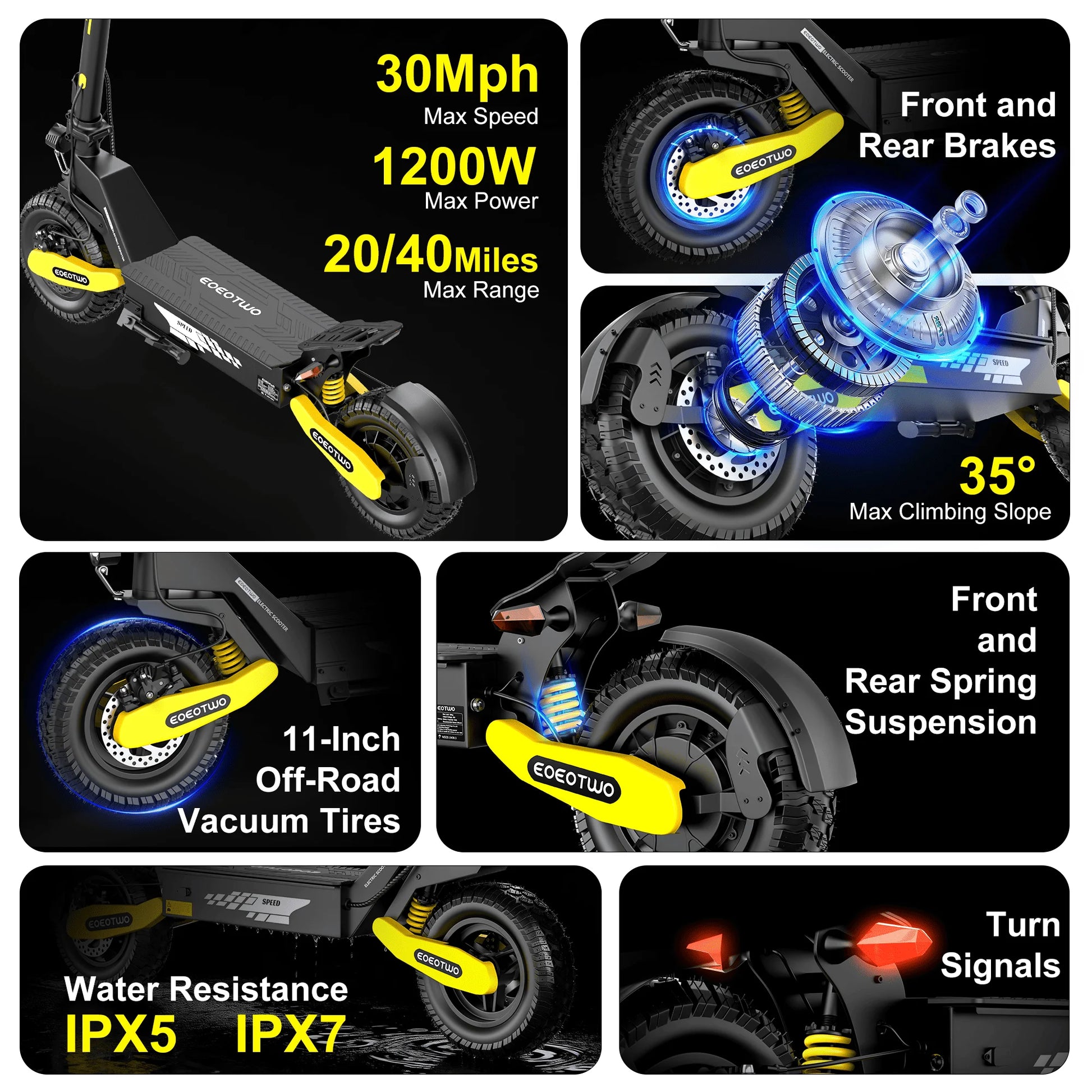 EOEOTWO GT06 Electric Scooter 30MPH 1200W Dual Suspension