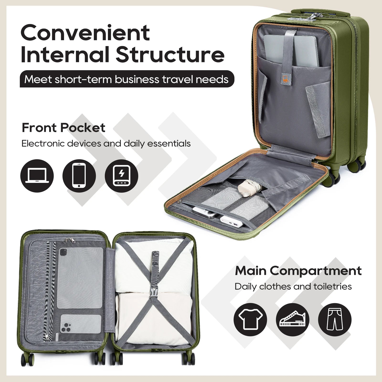 - Glide and access: Front-opening design gives quick access at gate or hotel, while 360° spinner wheels and a full aluminum 3-stage telescopic handle ensure smooth navigation.