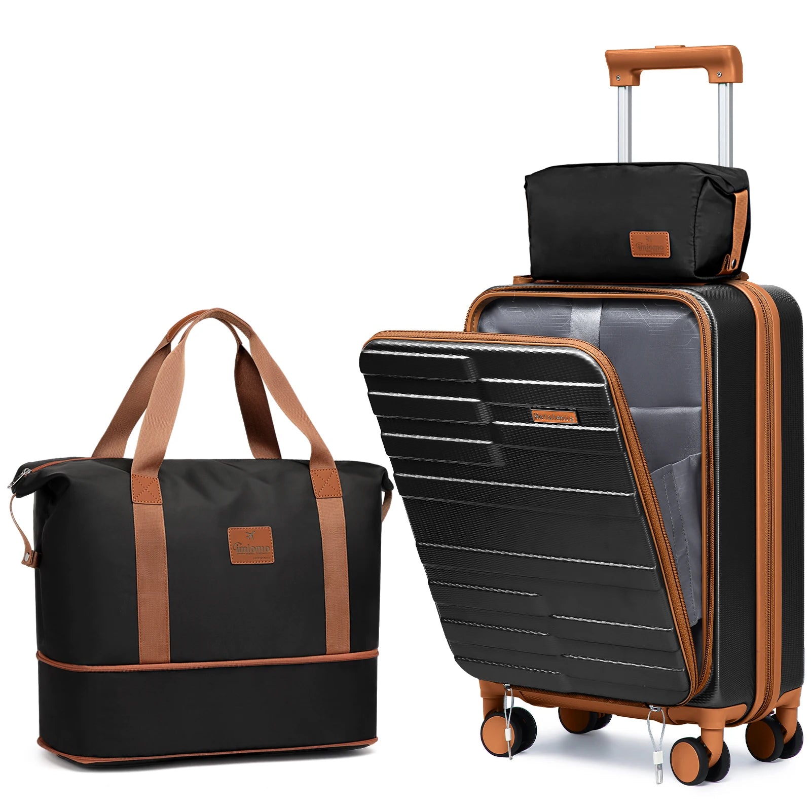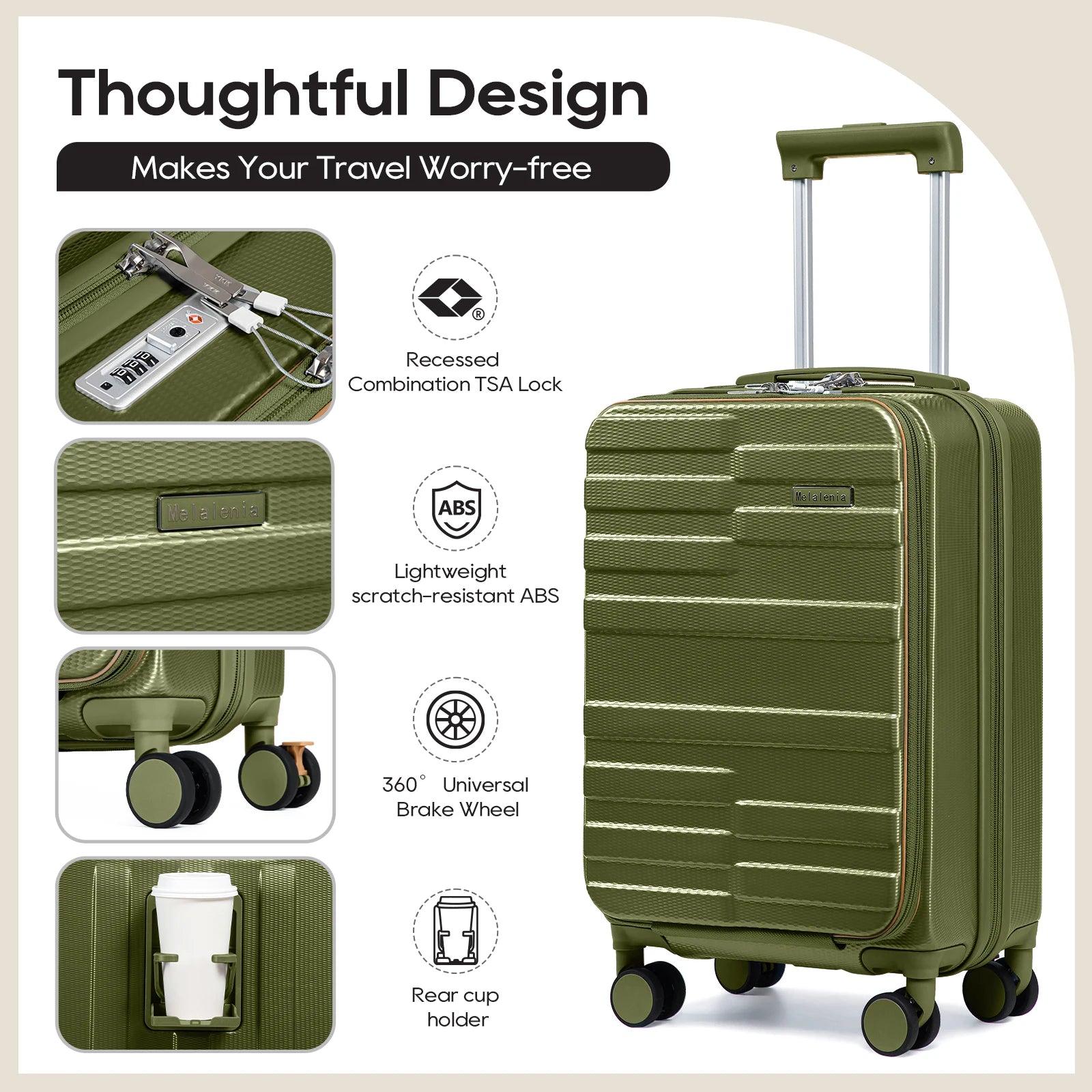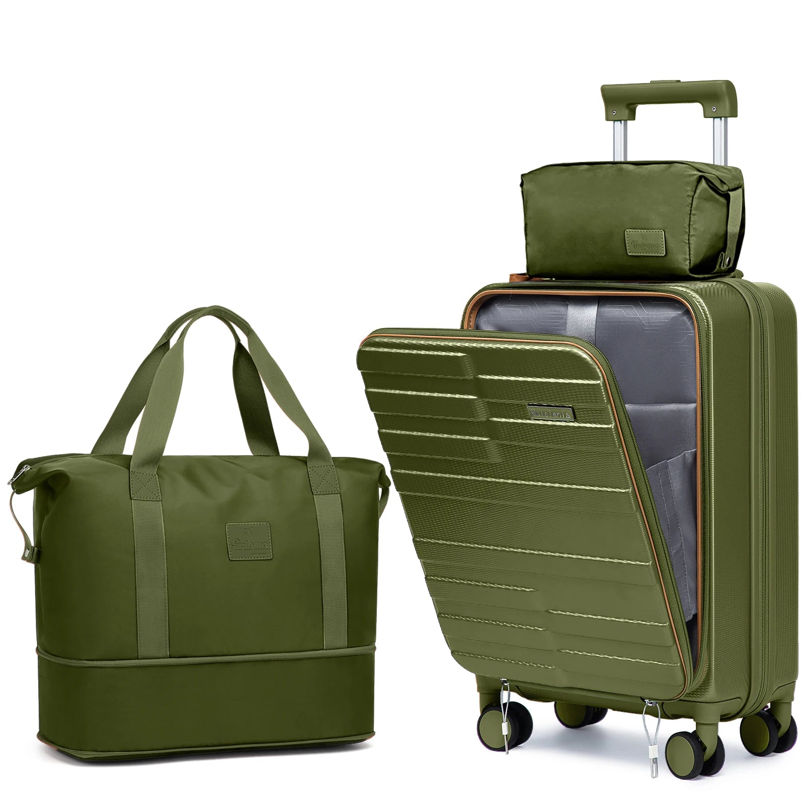 JoywayCN 3 Piece Luggage Set Front Opening Travel Suitcases Cup Holder TSA Lock
