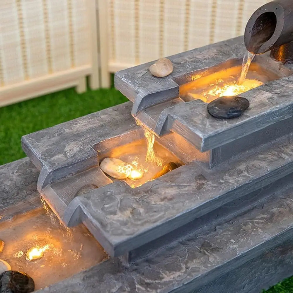 - Warm lighting casts soft highlights on the tiers, creating a tranquil ambiance for your relaxation, meditation, or focused work, even in low-light environments.