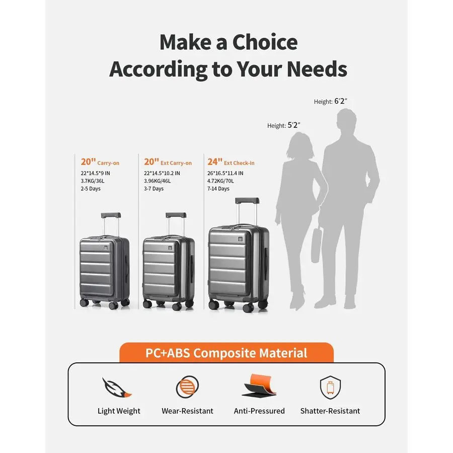 XMSJ Carry On Luggage Hardside Travel Case Front Pocket
