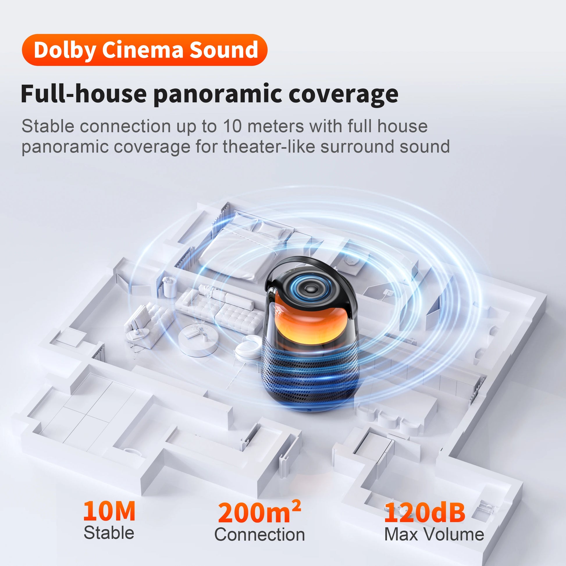 - Bluetooth 5.3 ensures fast, stable connections up to 10–20 m, while AUX, TF card, and USB drive options let you play from any device.